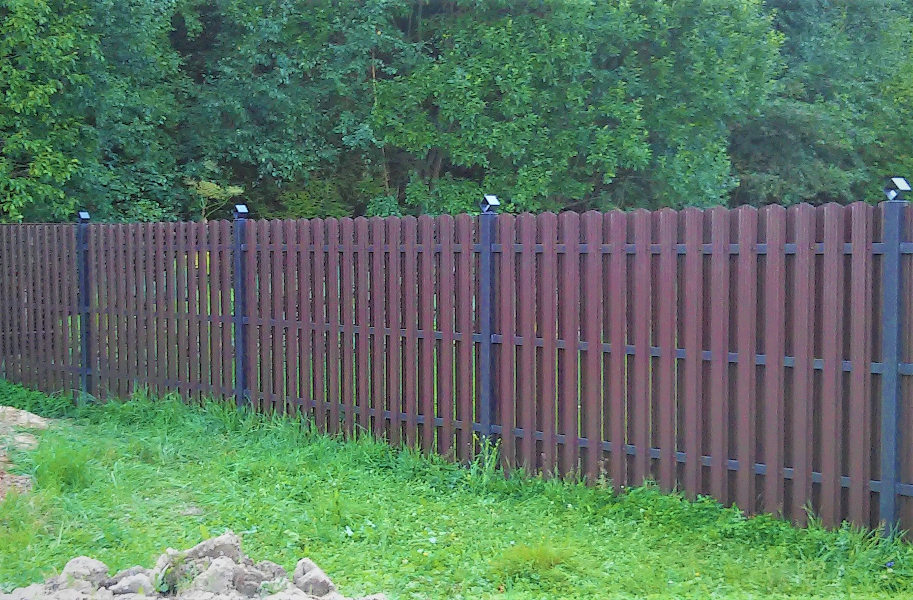 Производители предлагают разные длины и формы ламелей, готовые комплекты под ключ. Также можно заказать доборные элементы — калитки, ворота, крепежные детали, декоративные колпаки.